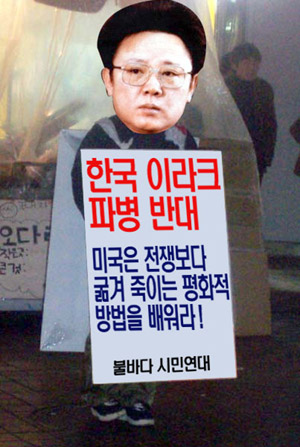 우리는 북한 주민을 사랑합니다. 그들을 착취하고 그들을 괴롭히는 독재자 김정일을 미워합니다. 하지만 반전-평화주의자들은